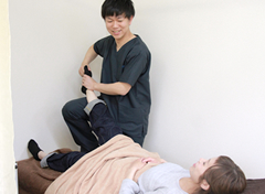 当院では、症状により異なりますが「歪みのチェック」から行います。そして、痛みの原因となる「骨格の歪み」を矯正した上で、筋肉を柔らかくする治療をします。